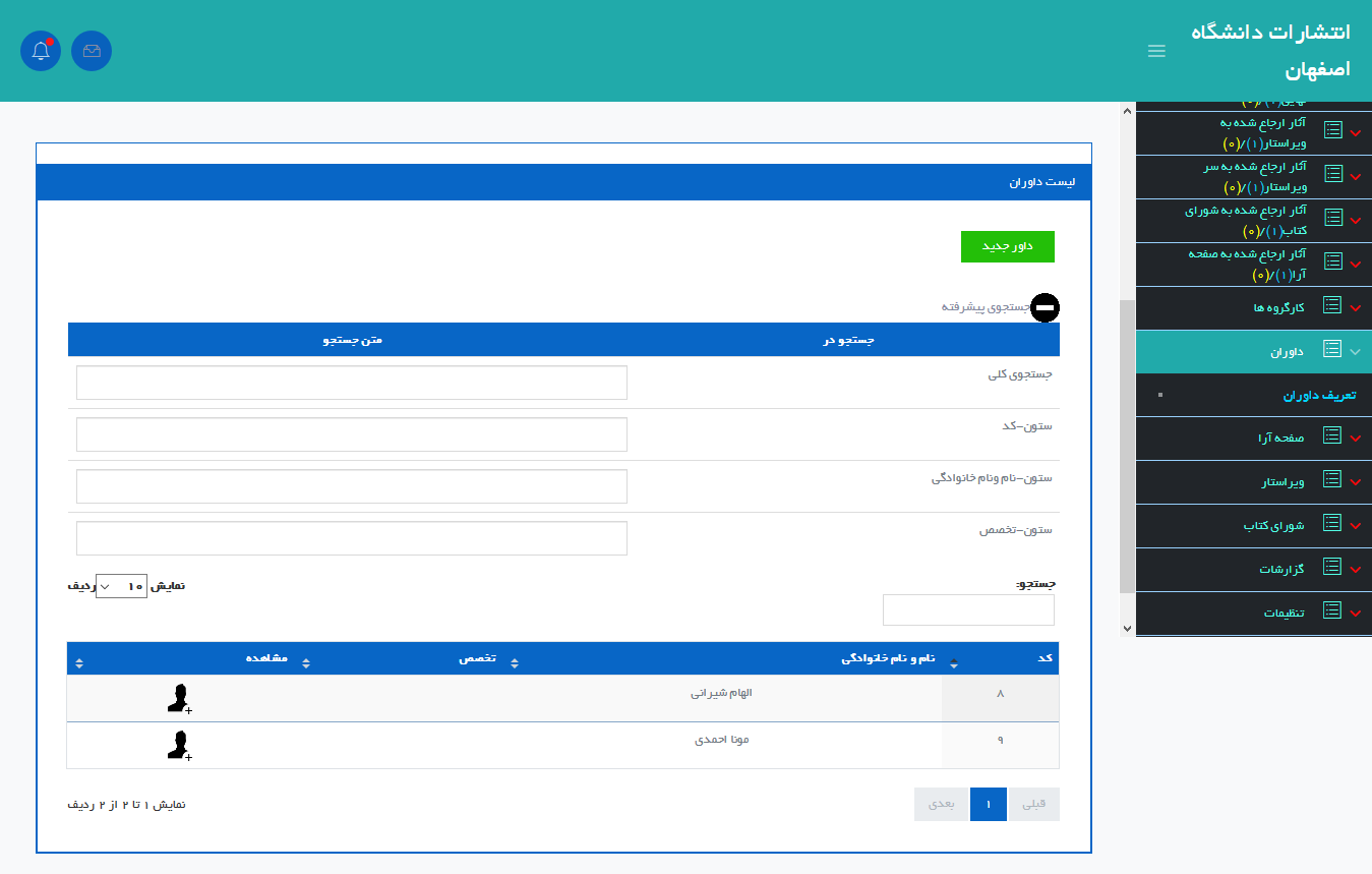 دراین قسمت افرادی که عضو داور هستند قابل مشاهده هستند