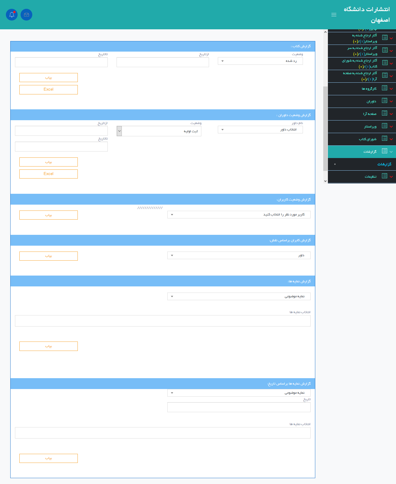 گزارش گیری براساس نام داور,وضعیت,تاریخ شروع وتاریخ پایان داوری
