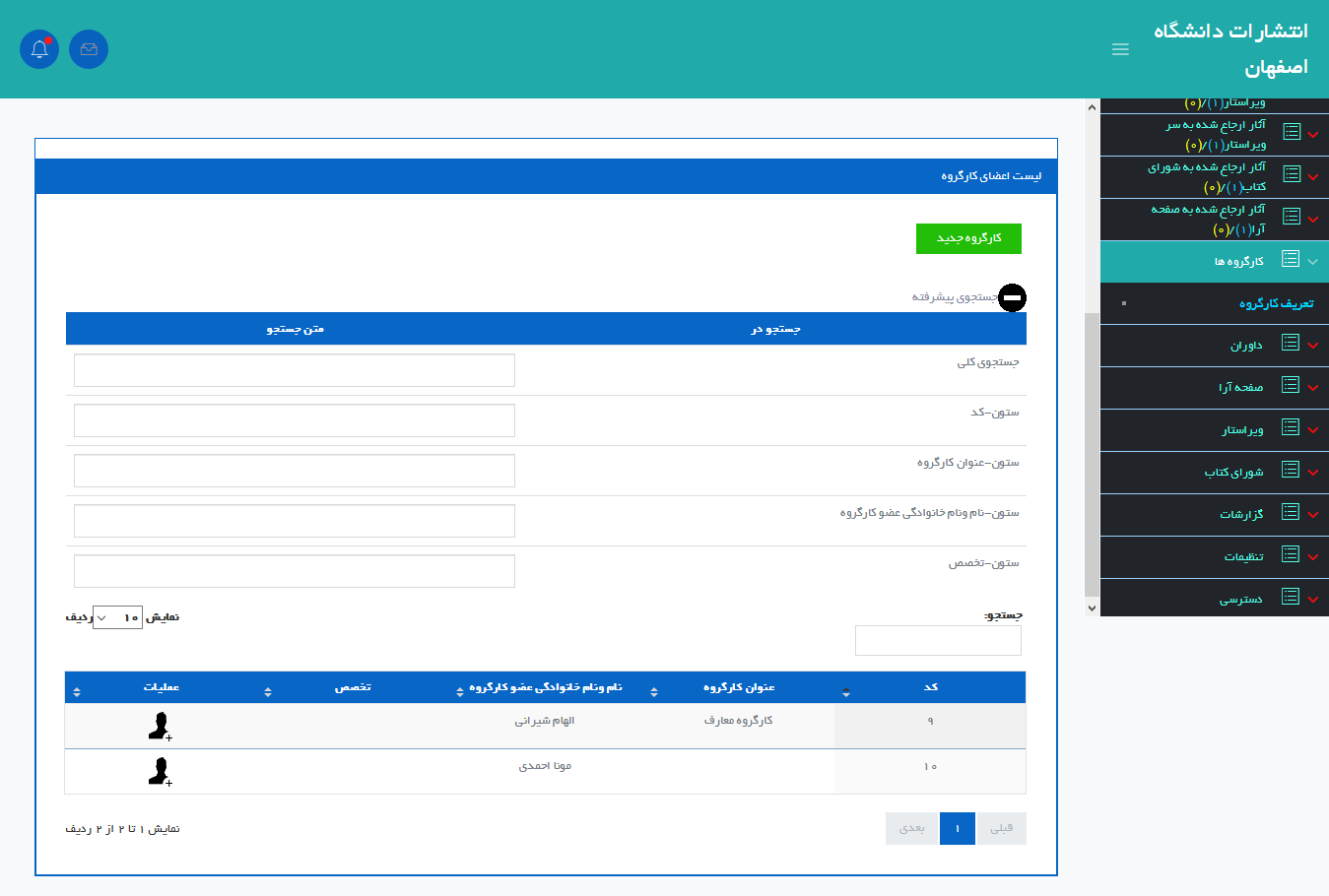 دراین قسمت افرادی که عضو کار گروه هستند قابل مشاهده هستند