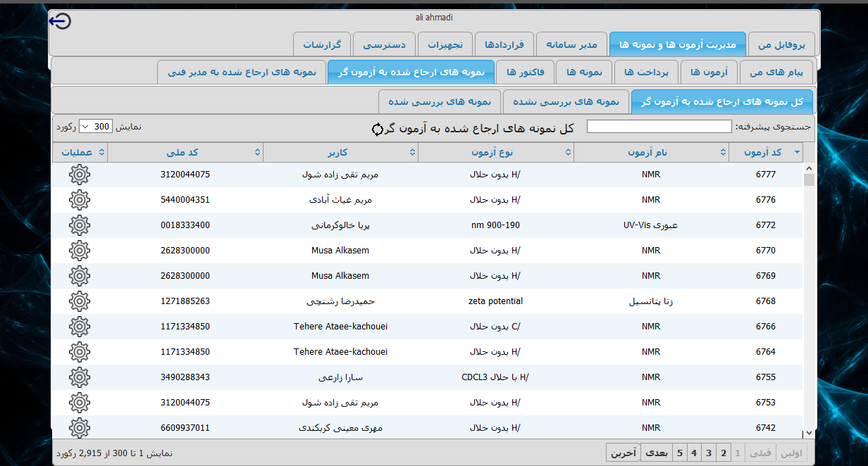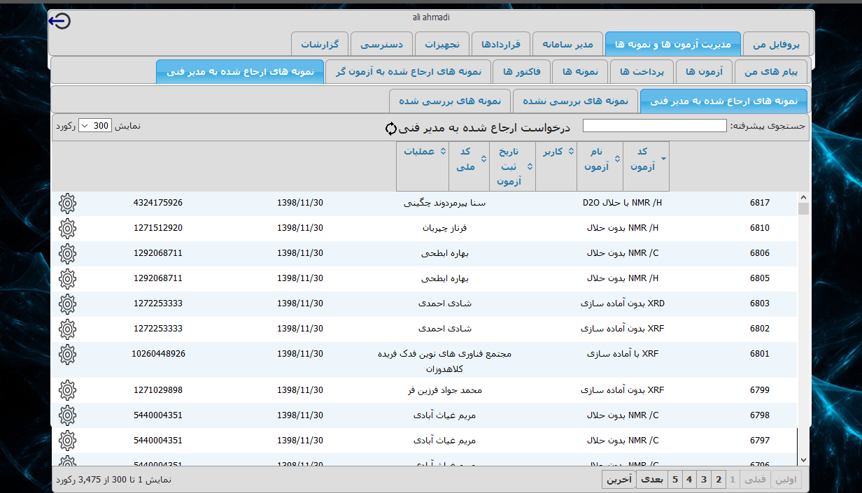 امکان ارجاع نمونه ها از مدیر فنی به آزمونگر وجود دارد.