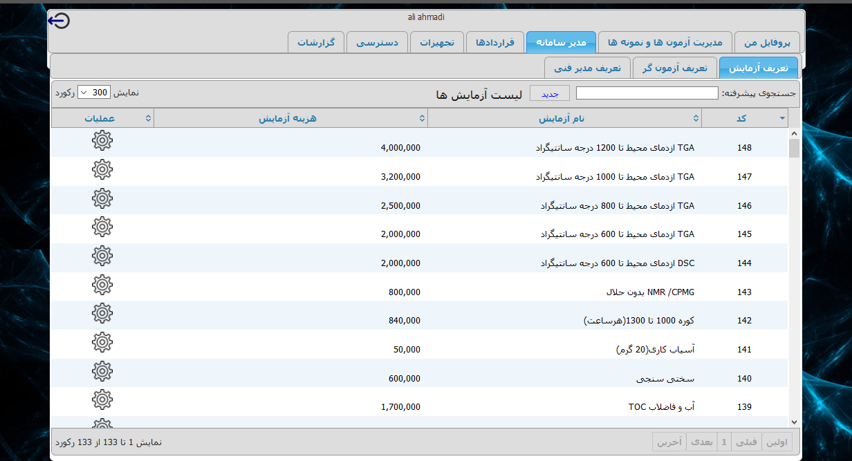 جدول آزمون هایی که همه نمونه های آن پرداخت شده با قابلیت جستجوی هوشمند را میتوان در این قسمت مشاهده کرد.