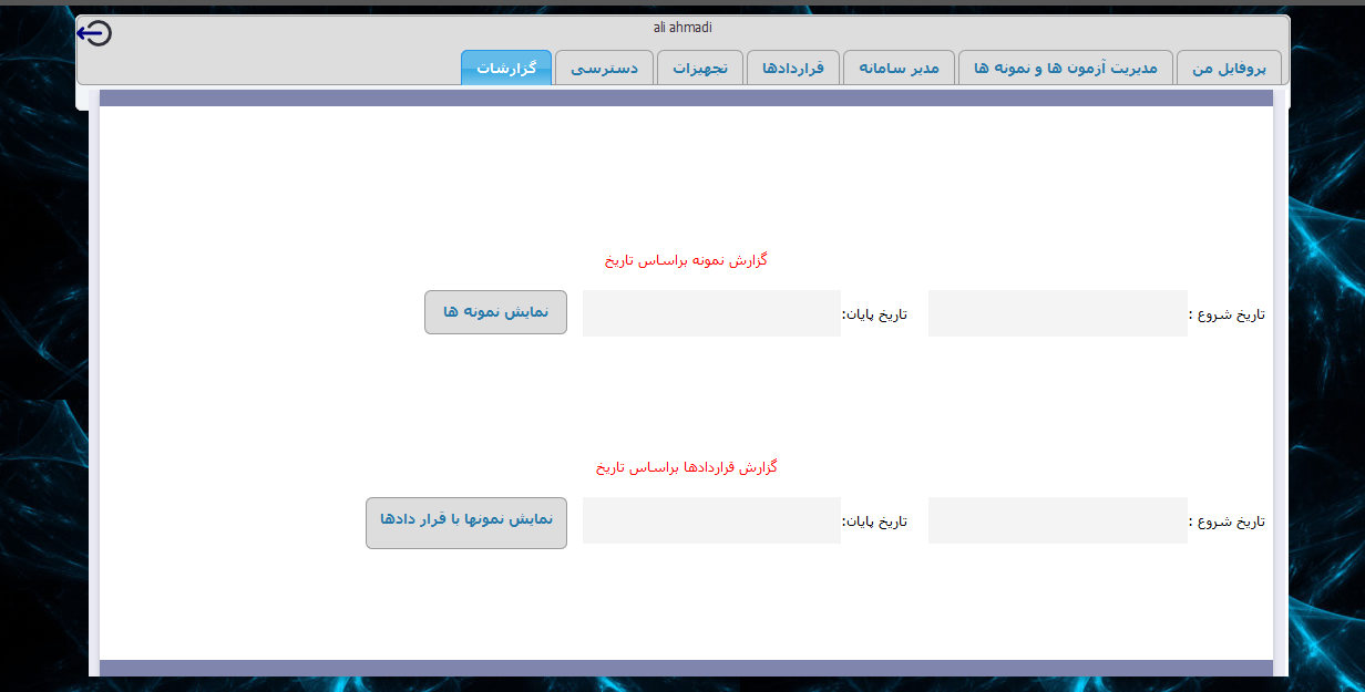امکان گزارش گیری از نمونه ها دراین قسمت وجود دارد.