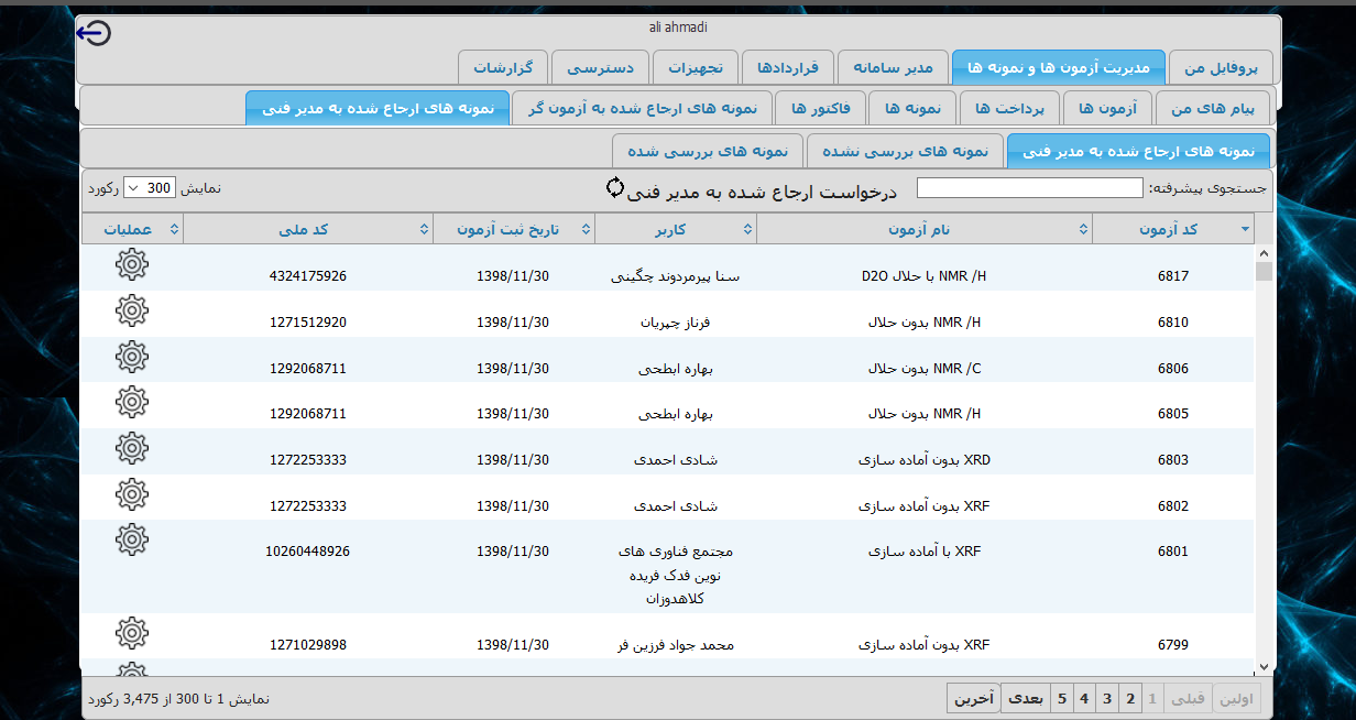 نمونه به مدیر فنی دراین قسمت ارجاع داده می شود ومدیر فنی آن نمونه را مورد بررسی قرار می دهد.