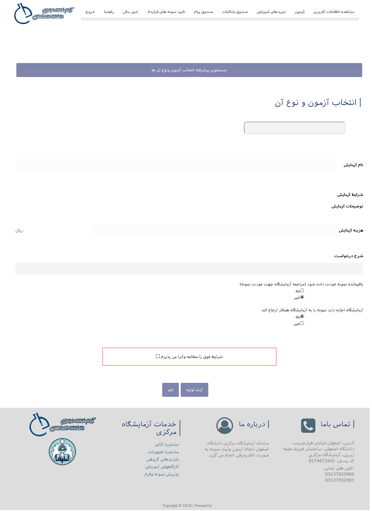 ثبت مشخصات نمونه توسط کاربر بصورت اینترنتی