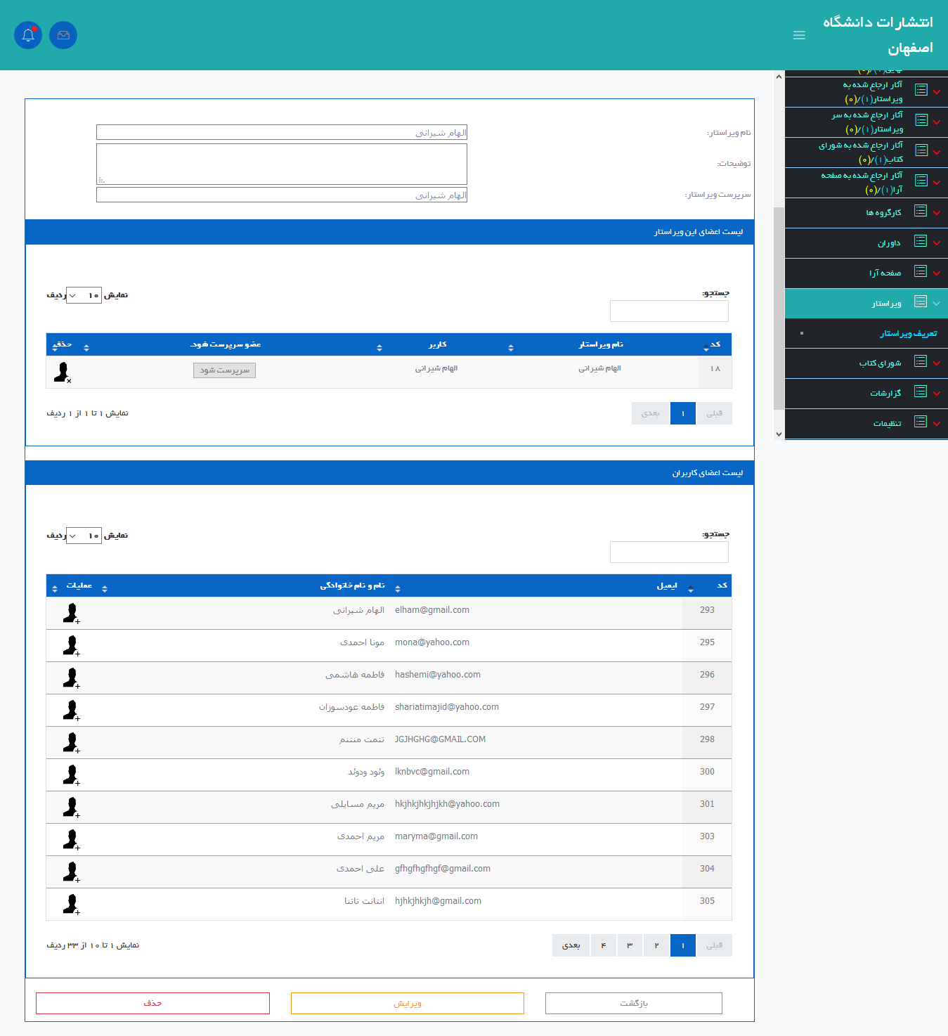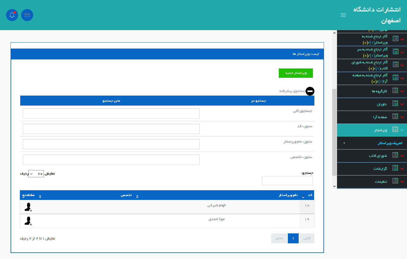 دراین قسمت افرادی که عضو ویراستار هستند قابل مشاهده هستند